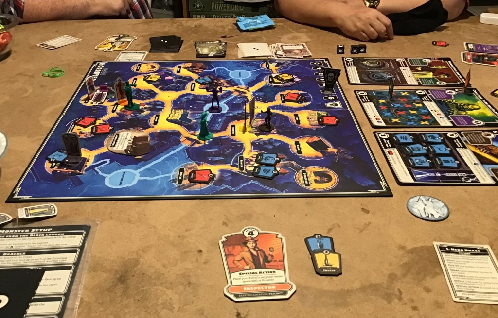 Six monsters come with the game and it could have easily gone down the route of releasing additional booster boxes with more, but the interaction of two to four monsters on the board at a time has been engaging each time. The rules suggest starting with two of the simplest monsters (Dracula and the Creature from the Black Lagoon). When you first try a new monster in a game, it recommends pairing it with one of the starter monsters. For added difficulty, start with three or four monsters and three monsters is far tougher than you might expect, depending on the combinations and the random outcomes of the Monster deck. Adding to the difficulty is the Frenzy marker, potentially activating a monster more than once in a single monster phase. Once there is only one monster left to defeat, there are pretty good odds that they will be moving / attacking at least once every turn, keeping it challenging even as you race to endgame.