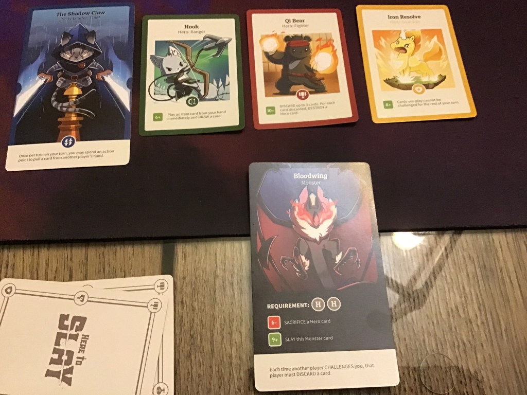 Finally, there is a lot to try to recall or read at a distance (depending on size of table and quality of eyes) to take in all the abilities of all the heroes and monsters in play (there’s a wiki of all the cards). In short, if you like cut throat card games or the mechanics of the Munchkin card game but want something with a bit more crunch, you will probably enjoy ‘Here to Slay’.