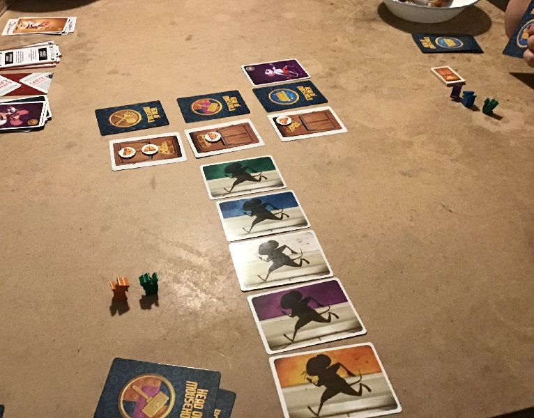 Fun mice images, light strategy thinking, and the five turns go by pretty quick meaning you reach endgame in well under an hour. Once you play a few games, there are some extra event cards to add some more variations to game play.