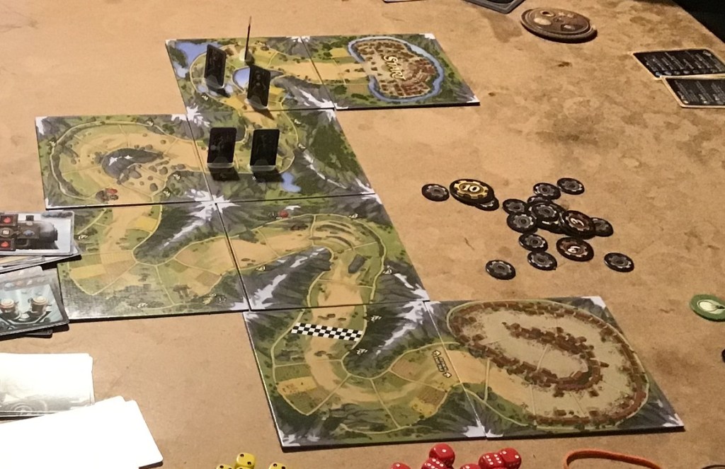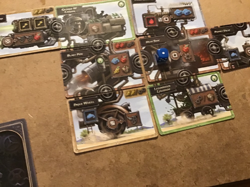 Most games that depend on dice rolling can swing a fair bit but Steampunk Rally has mechanics that minimize the worst of it. Dice that roll low are easier to Vent and remove to make room for new dice. Dice that roll high can do more but are harder to clear. Cogs are easy enough to gain to modify your rolls to the results you need.