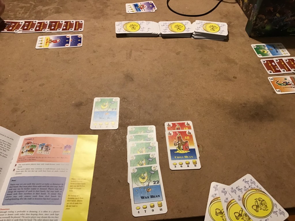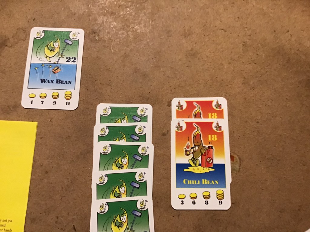 You can sell your beans at any time and the cards themselves are used for tracking coins, meaning that as you go through the deck a second and third time, the number of each beans is fewer and card counting gets that much more difficult.