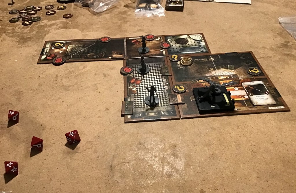 I really like the pieces. The room tiles and the plastic miniatures have got good reusability for other games. There is a certain satisfaction to having moving a barricade token to keep that door shit. The mood music provided from by the app adds nice atmosphere. And the stories really follow the feel I would expect of a Call of Cthulhu game. Our first play through ended with the mansion being torn apart by a cultist ritual while one investigator was left a gibbering mess, limping away from an unspeakable horror and setting things on fire.