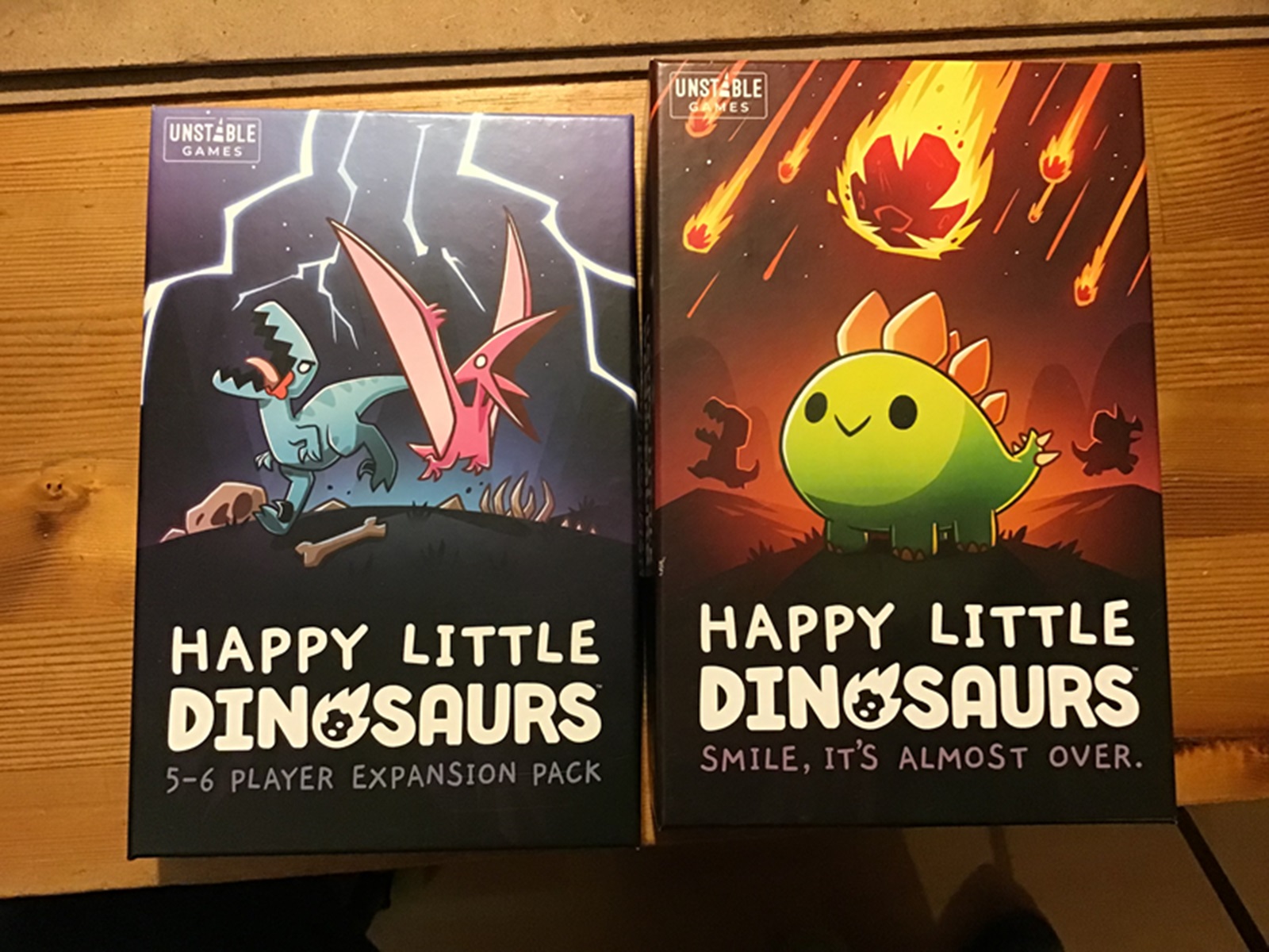 I would call this an entertaining game with some pretty simple but swingy mechanics. Avoid disaster cards, play cards to gain points, and be the last dinosaur standing. It’s got a quick play time so being eliminated isn’t a horrible thing. I was gifted with the 5-6 Player expansion and picked up another expansion pack for more disasters.