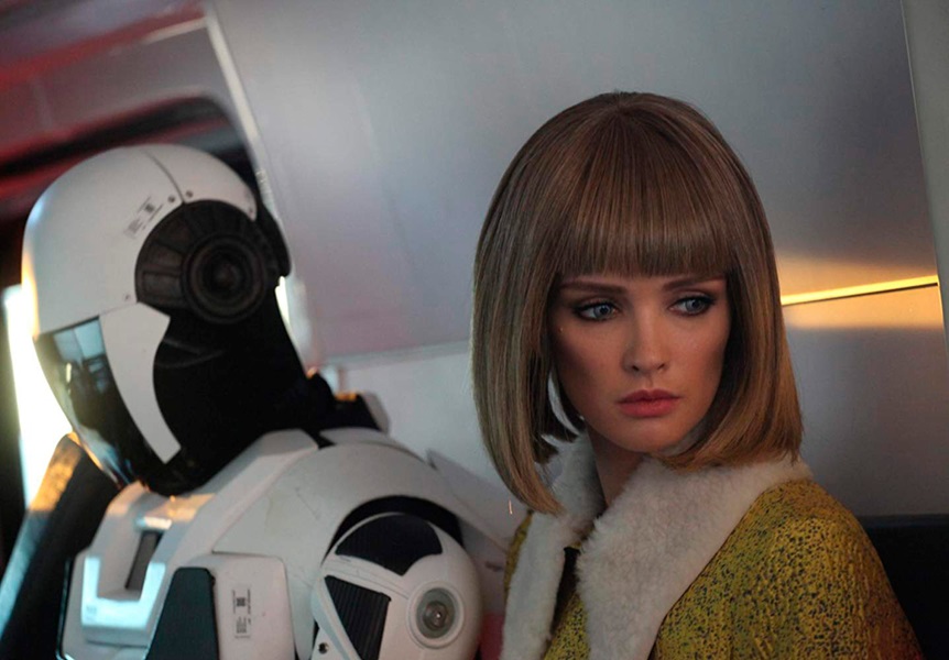 There are some aesthetic choices that I couldn’t help but notice. This is no rain drenched neon nights cyberpunk noir. Most of the scenes take place during the daylight with clean streets and light colored building. The robots have a smooth look to their exoskeleton and the human appearing androids are equally polished, contrasted to many of the humans characters who are disheveled in some way. Pretty much all the primary male characters are unshaven, father Georgy is consistently rumpled in dress and even sharp dressed corporate always has some pretty intense five o’clock shadow. The visuals seem to speak to a future promising near perfection with androids while humans are the messy parts of the world, so was it a deliberate director choice to emphasize who is the better of us?