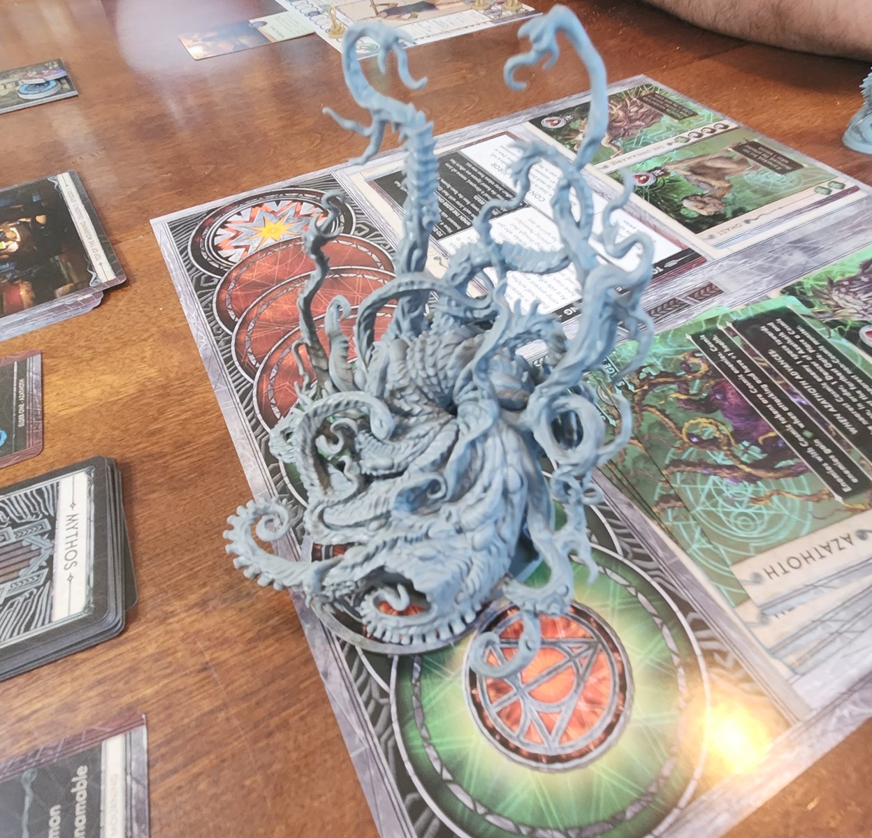 Not about the game, but the company that makes it was one of the ones that got hit hard by the current tariff situation and being committed to several kickstarter campaigns. Bottom line, the company might be going under and has been reported as selling off some of it’s IP and game lines, so we may or may not get the promised Season 4 with Nyarlothotep and who knows what might get rereleased from the other expansions and core boxes in the future …