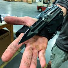 Inspired by such things as the hidden wrist blade of Assassin’s Creed and more than a few grim dark comic book characters of the late 80s / early 90s, with all the subtlety of a David Cronenberg movie, a handy blade that lives beneath your flesh seemed very Mork Borgian.